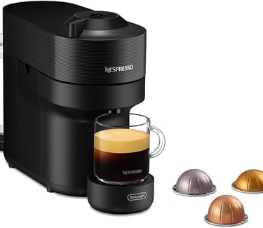 De'Longhi Nespresso Vertuo Pop ENV90.B, Cafetera Automática, Máquina de Café de Cápsulas Desechables, 4 Tamaños de Taza, Tecnología de Centrifugación, Set de Bienvenida Incluido, 1260W, Negro Regaliz